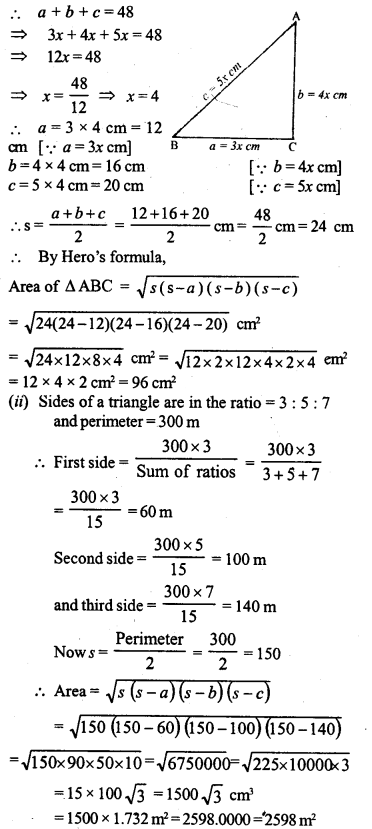 (ii) The sides of a triangular plot are in the ratio 3: 5:7 and its perimeter is 300 m. Find its area.