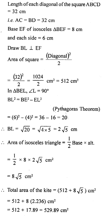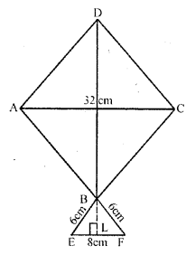 The given figure shows a kite in the shape of a square with a diagonal 32 cm and an isosceles triangle of base 8 cm and side 6cm each. How much paper is used in making the kite ? Ignore the wastage of the paper is making the kite.