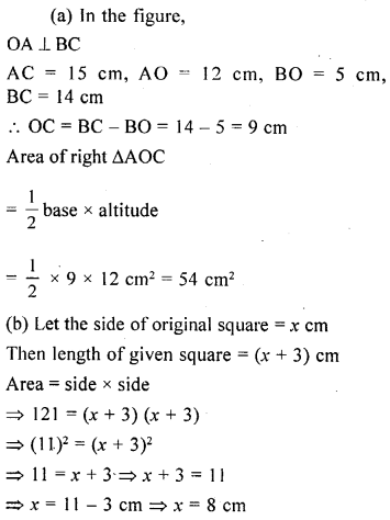 (b) If the sides of a square are lengthened by 3 cm, the area becomes 121 cm2. Find the perimeter of the original square.