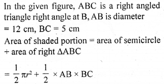 In the given figure, ABC is a right angled triangle at B. A semicircle is drawn on AB as diameter. If AB = 12 cm and BC = 5 cm, then the area of the shaded region is