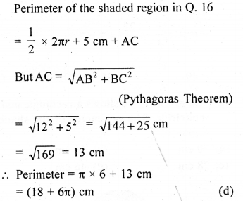 The perimeter of the shaded region shown in Q. 16 (above) is