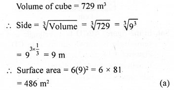 If the volume of a cube is 729 m3, then its surface area is