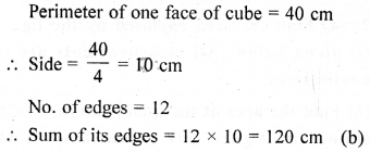 If the perimeter of one face of a cube is 40 cm, then the sum of lengths of its edge is
