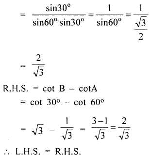tan θ = \(\frac{B C}{A B}\) ⇒ tan 30°= \(\frac{2 \sqrt{3}}{\mathrm{AB}}\)