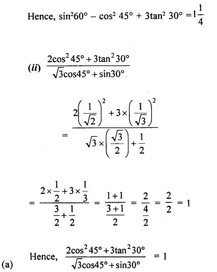 (ii) \(\frac{2 \cos ^{2} 45^{\circ}+3 \tan ^{2} 30^{\circ}}{\sqrt{3} \cos 30^{\circ}+\sin 30^{\circ}}\)