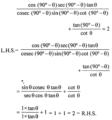 = 1 – (1)2 = 1 – 1 = 0 (∵ sin2 θ + cos2 θ = 1 and tan 45° = 1)