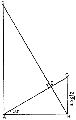 BC = 2\( \sqrt3 \) cm AC and BD intersect each other at E at right angle and ∠CAb = 30°.