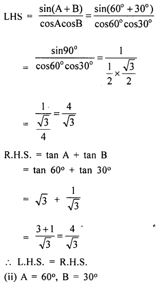 ⇒ tan ( A + B) = tan 60° [tan 60° = \( \sqrt3 \) ]