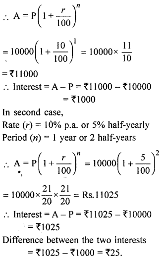 ₹ 10000 were lent for one year at 10% per annum. By how much more will the interest be, if the sum was lent at 10% per annum, interest being compounded half-yearly ?