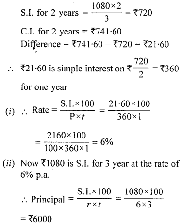 The simple interest on a certain sum for 3 years is ₹1080 and the compound interest on the same sum at the same rate for 2 years is ₹741·60. Find