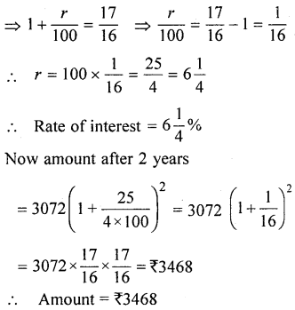A man invests ₹3072 for two years at compound interest. After one year the money amounts to ₹3264. Find the rate of interest and the amount due at the end of 2nd year.
