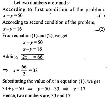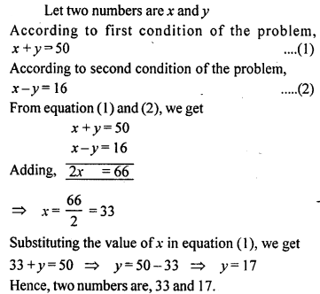 The sum of two numbers is 50 and their difference is 16. Find the numbers.