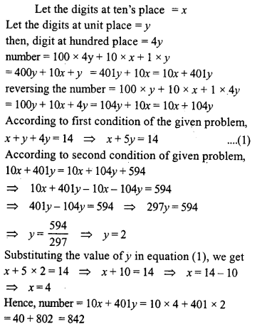 A number of three digits has the hundred digit 4 times the unit digit and the sum of three digits is 14. If the three digits are written in the reverse order, the value of the number is decreased by 594. Find the number.