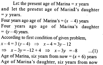 Four years ago Marina was three times old as her daughter. Six years from now the mother will be twice as old as her daughter. Find their present ages.