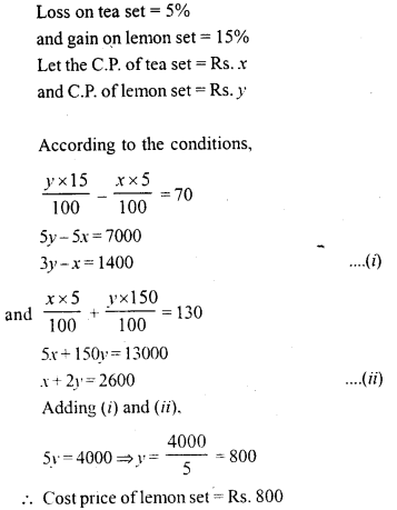 On selling a tea set at 5% loss and a lemon set at 15% gain, a shopkeeper gains Rs. 70. If he sells the tea set at 5% gain and lemon set at 10% gain, he gains Rs. 130. Find the cost price of the lemon set.