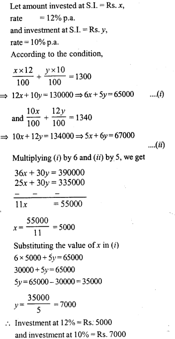 A person invested some money at 12% simple interest and some other amount at 10% simple interest. He received yearly interest of Rs, 1300. If he had interchanged the amounts, he would have received Rs. 40 more as yearly interest. How much did he invest at different rates ?