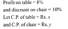A shopkeeper sells a table at 8% profit and a chair at 10% discount, thereby getting Rs. 1008. If he had sold the table at 10% profit and chair at 8% discount, he would have got Rs. 20 more. Find the cost price of the table and the list price of the chair.