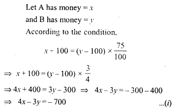A and B have some money with them. A said to B, “if you give me Rs. 100, my money will become 75% of the money left with you.” B said to A” instead if you give me Rs. 100, your money will become 40% of my money, How much money did A and B have originally ?