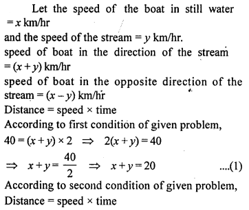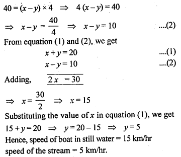 A boat takes 2 hours to go 40 km down the stream and it returns in 4 hours. Find the speed of the boat in still water and the speed of the stream.