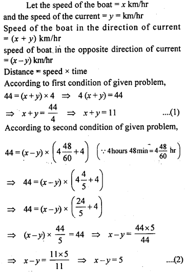 A boat sails a distance of 44 km in 4 hours with the current. It takes 4 hours 48 minutes longer to cover the same distance against the current. Find the speed of the boat in still water and the speed of the current.