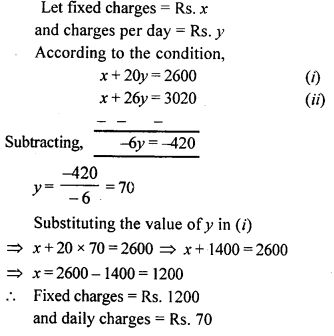 A part of monthly hostel charges is fixed and the remaining depends on the number of days one has taken food in the mess. When Bhawana takes food for 20 days, she has to pay Rs. 2600 as hostel charges; whereas when Divya takes food for 26 days, she pays Rs. 3020 as hostel charges. Find the fixed charges and the cost of food per day.