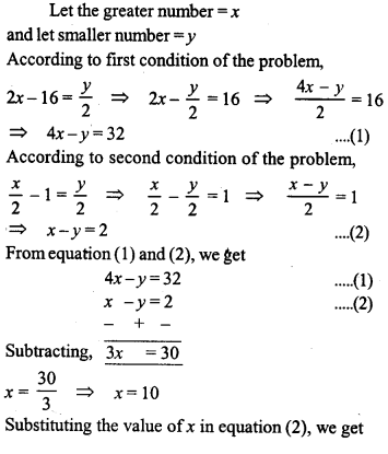 If from twice the greater of two numbers 16 is subtracted, the result is half the other number. If from half the greater number 1 is subtracted, the result is still half the other number. What are the numbers.