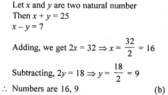 The sum of two natural numbers is 25 and their difference is 7. The numbers are