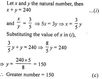 The sum of two natural numbers is 240 and their ratio is 3 : 5. Then the greater number is