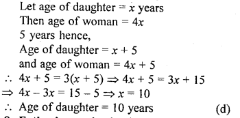 The age of a woman is four times the age of her daughter. Five years hence, the age of the woman will be three times the age of her daughter. The present age of the daughter is
