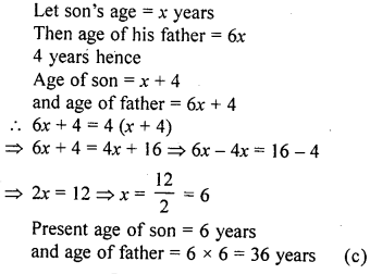Father’s age is six times his son’s age. Four years hence, the age of the father will be four times his son’s age. The present age in years of the son and the father are, respectively