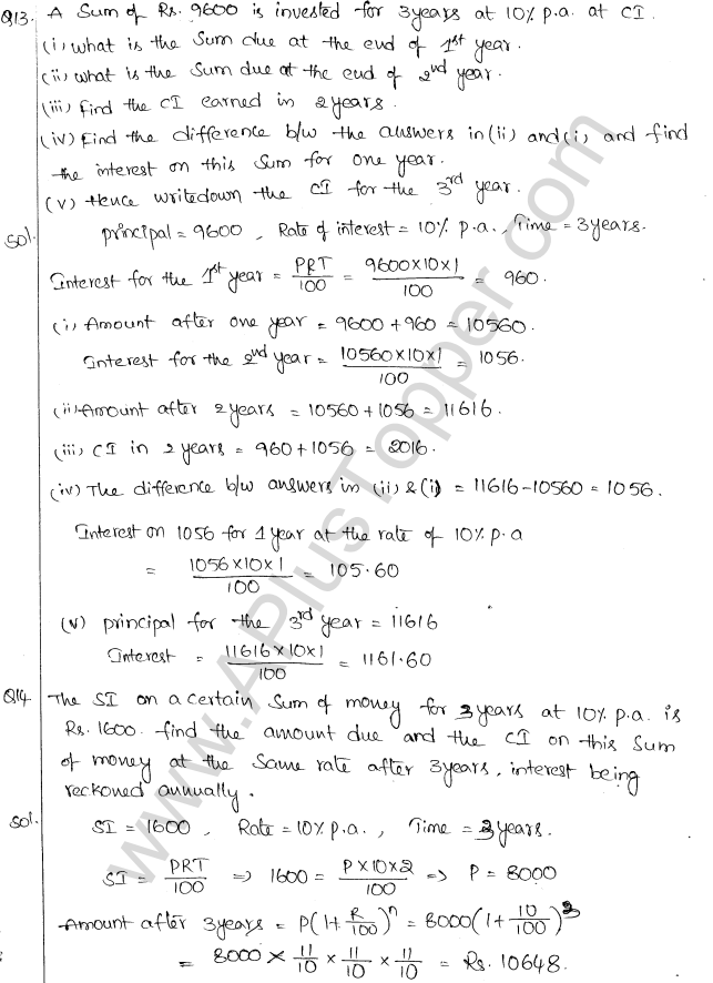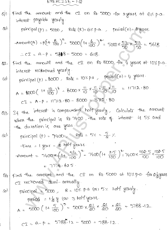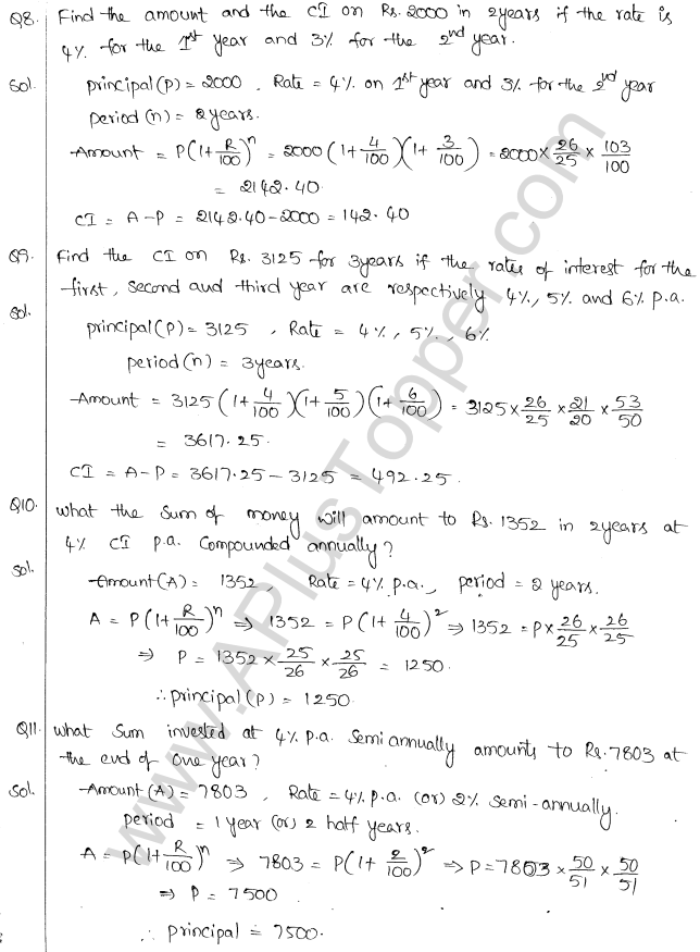 ML Aggarwal Class 10 Solutions Chapter 1 Compound Interest