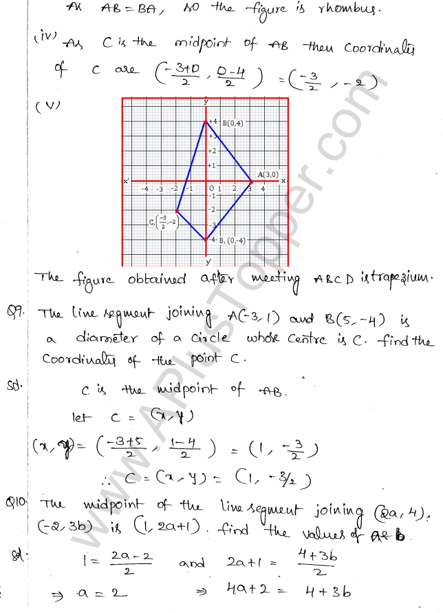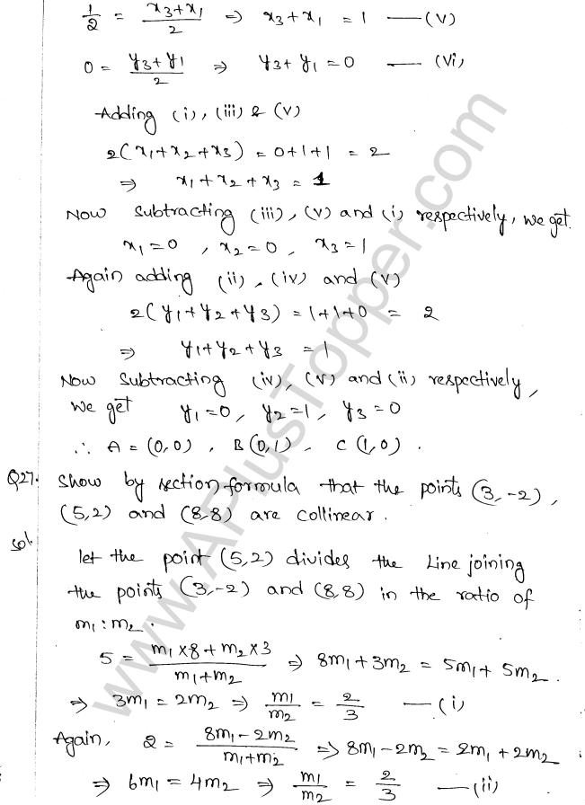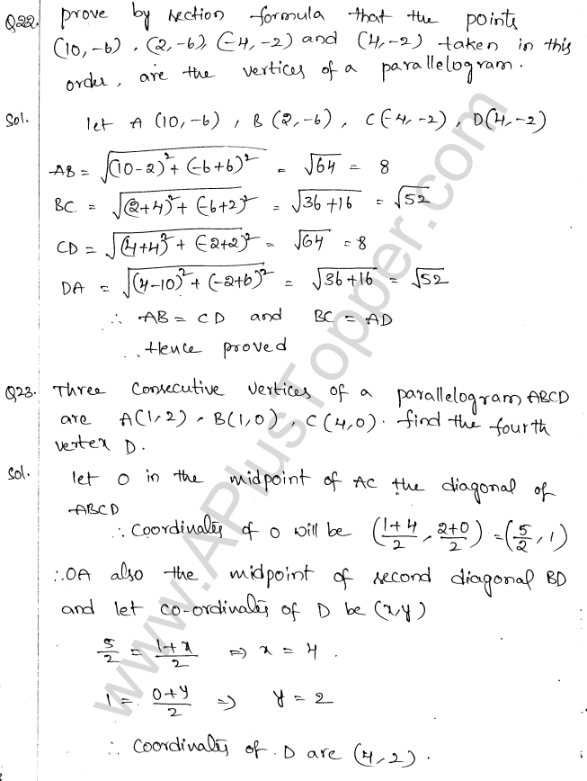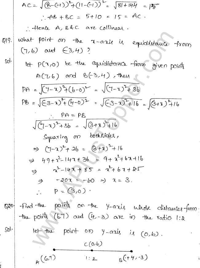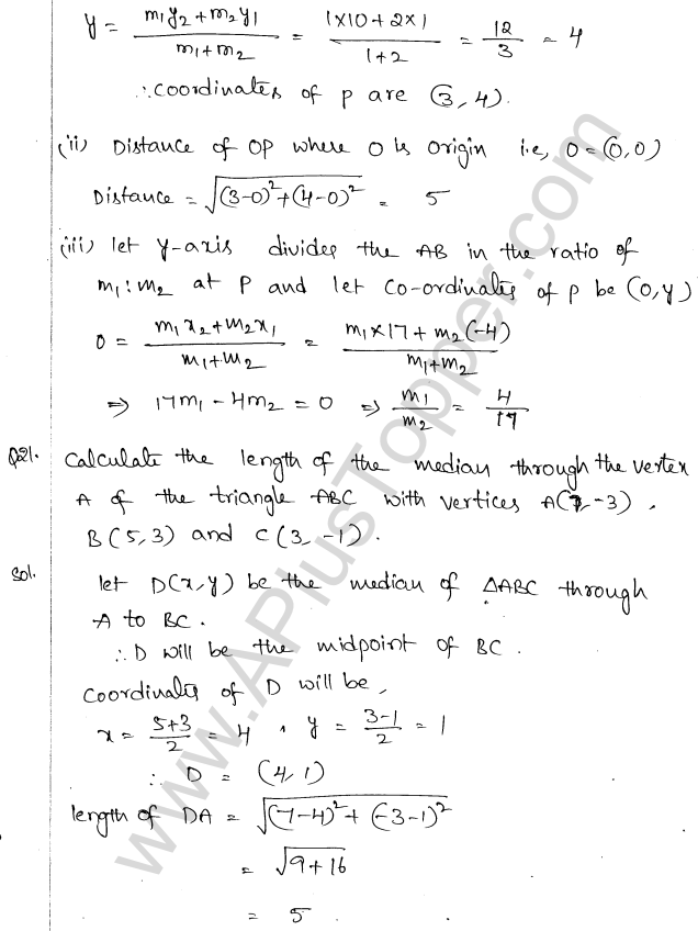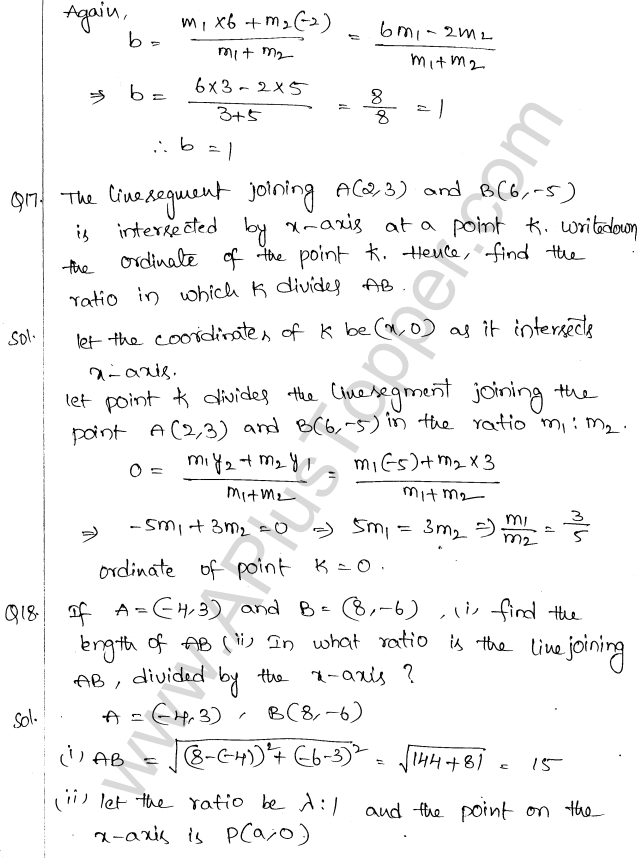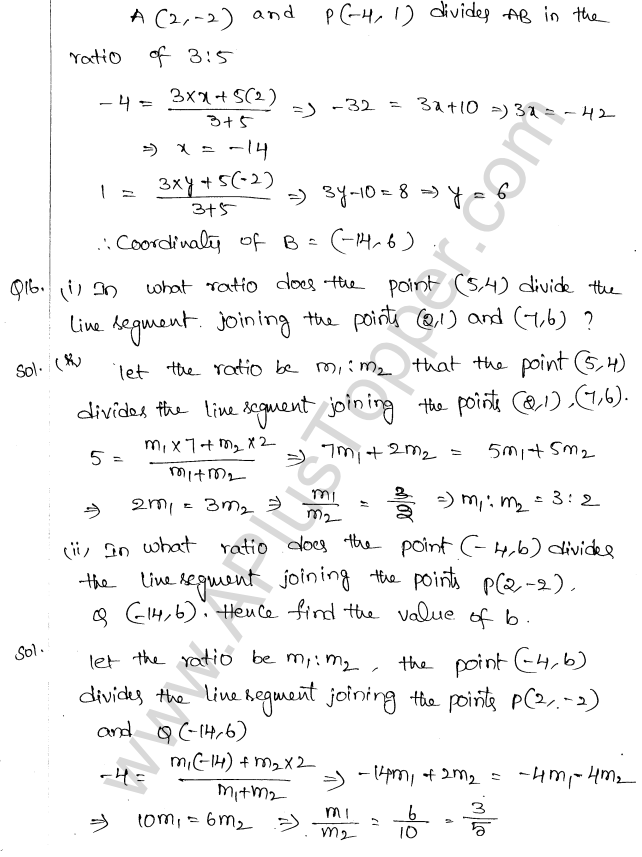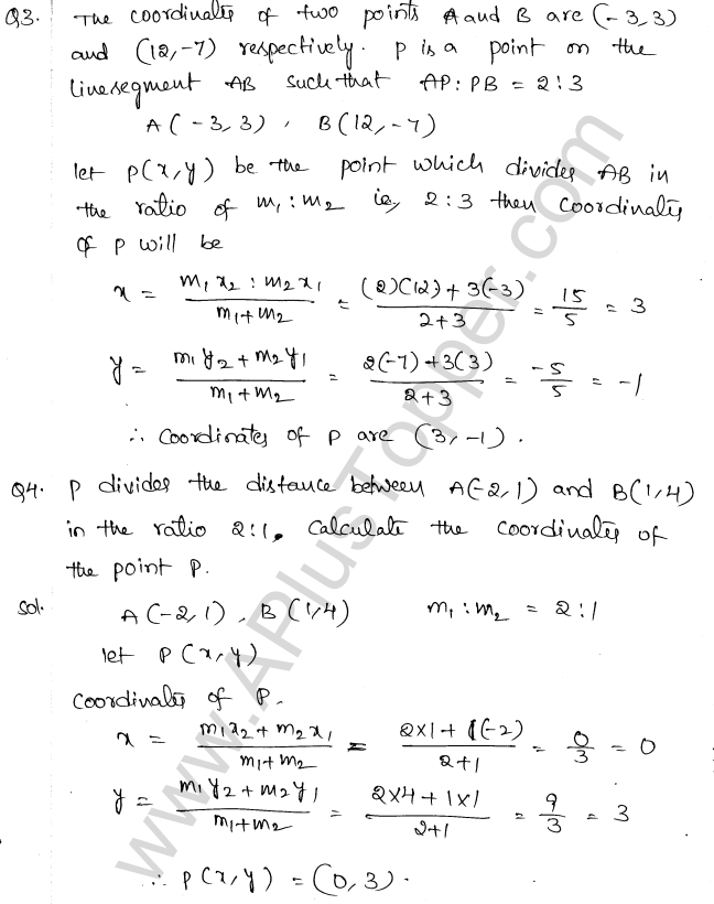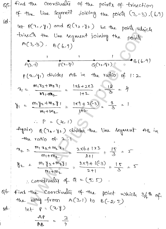 ML Aggarwal Class 10 Solutions Chapter 11 Section Formula