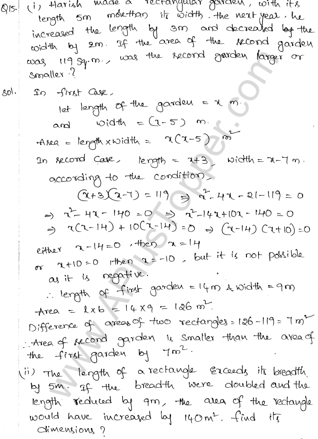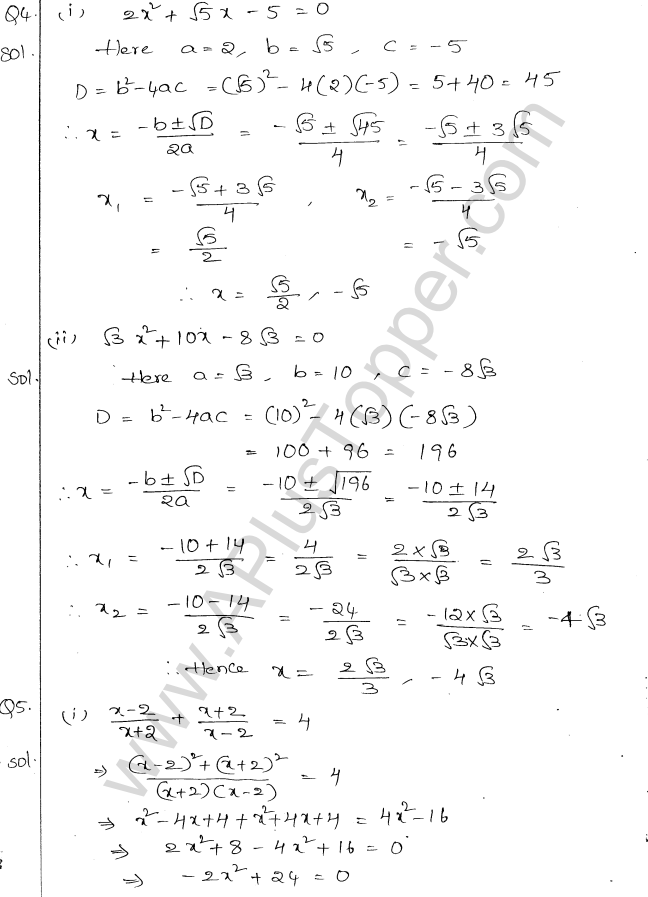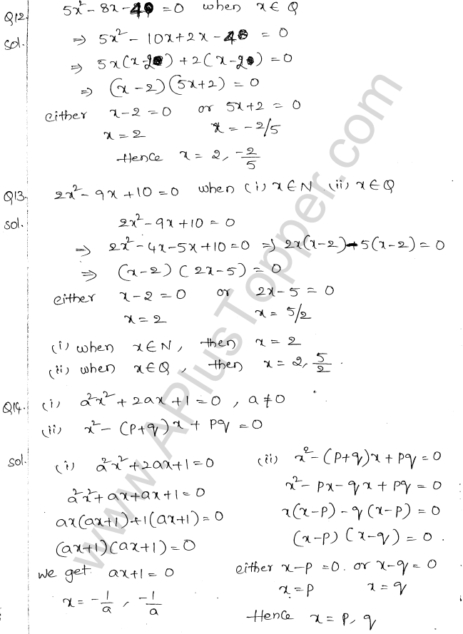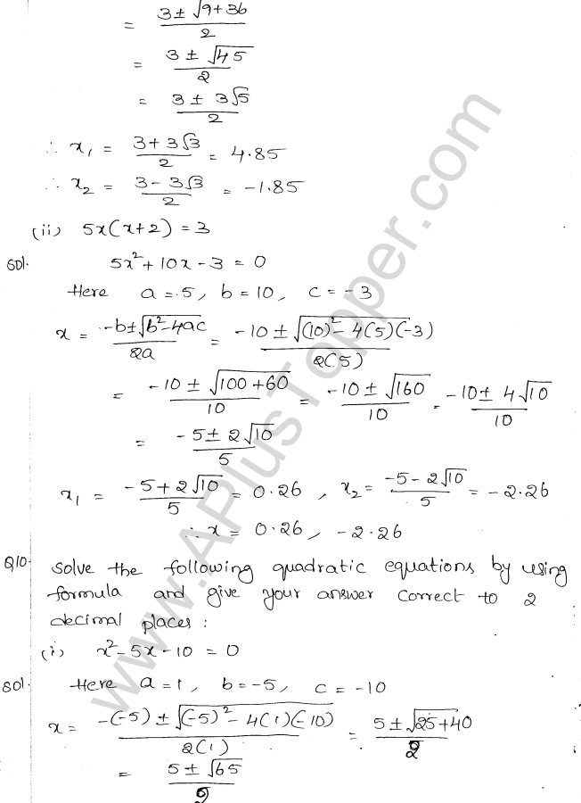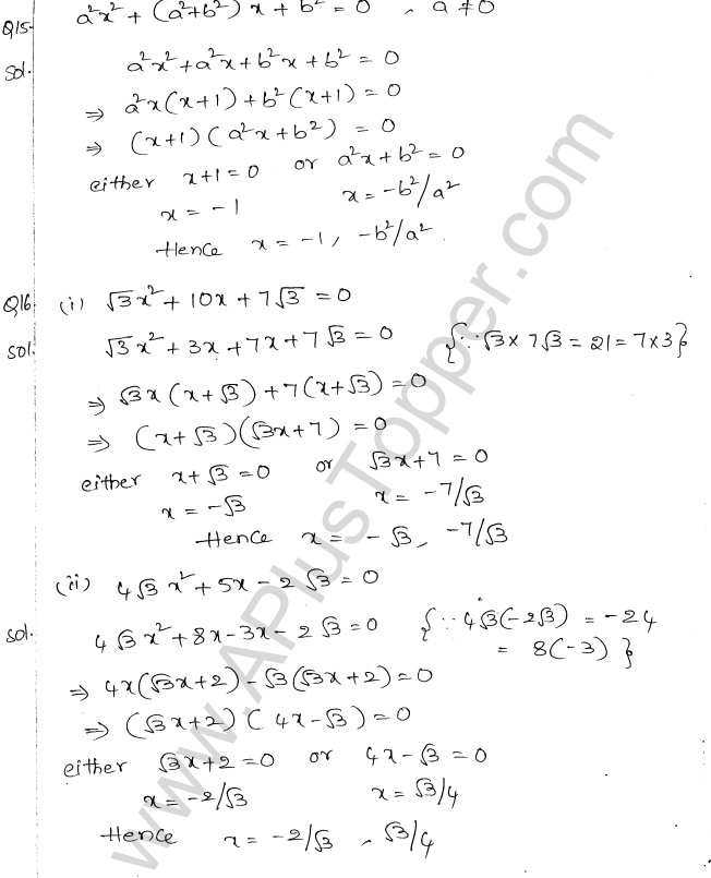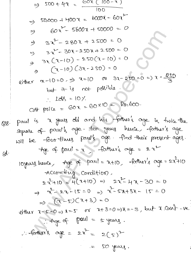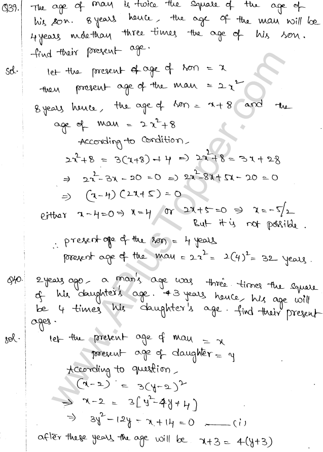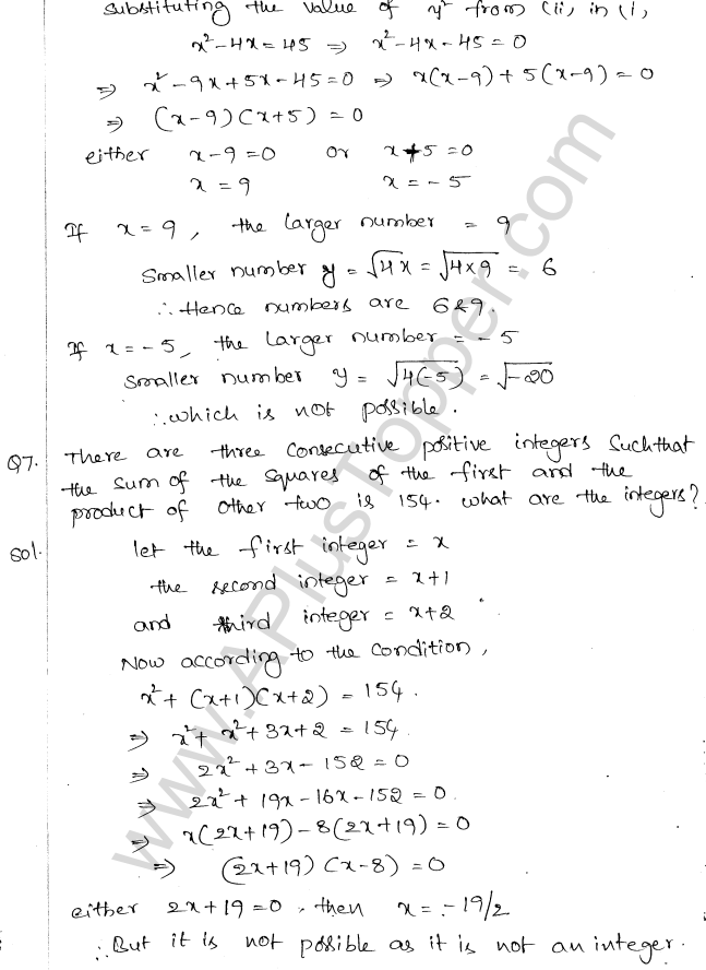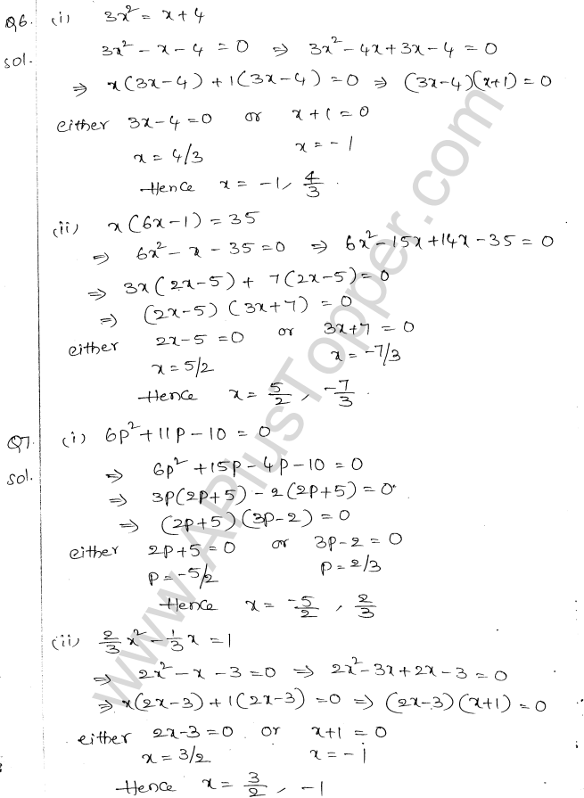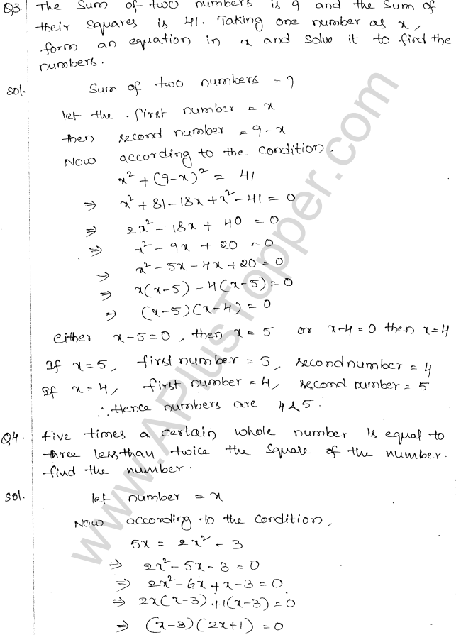 ML Aggarwal Class 10 Solutions Chapter 5 Quadratic Equations in One Variable