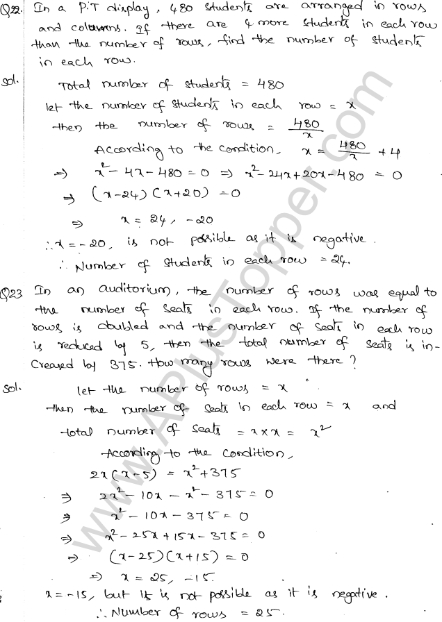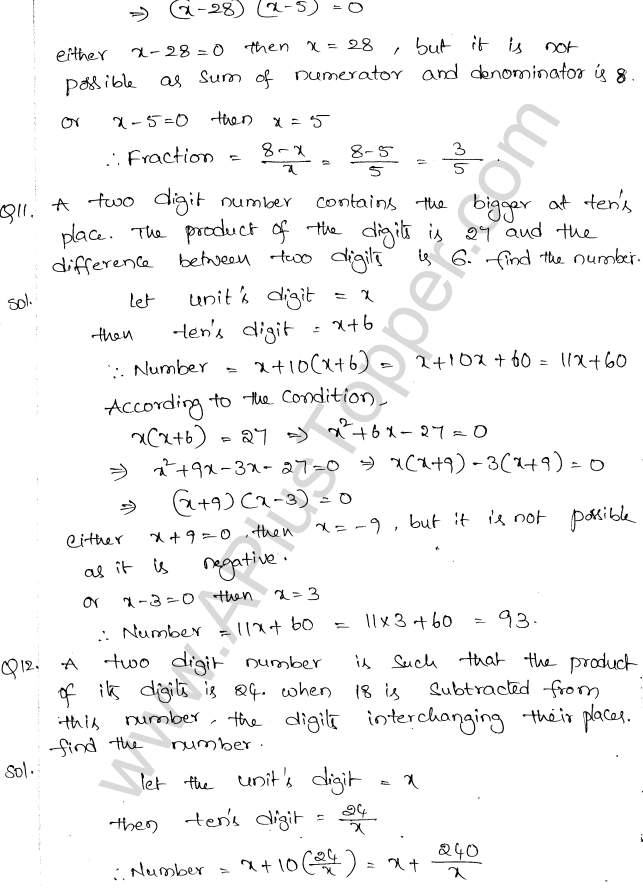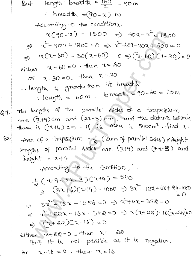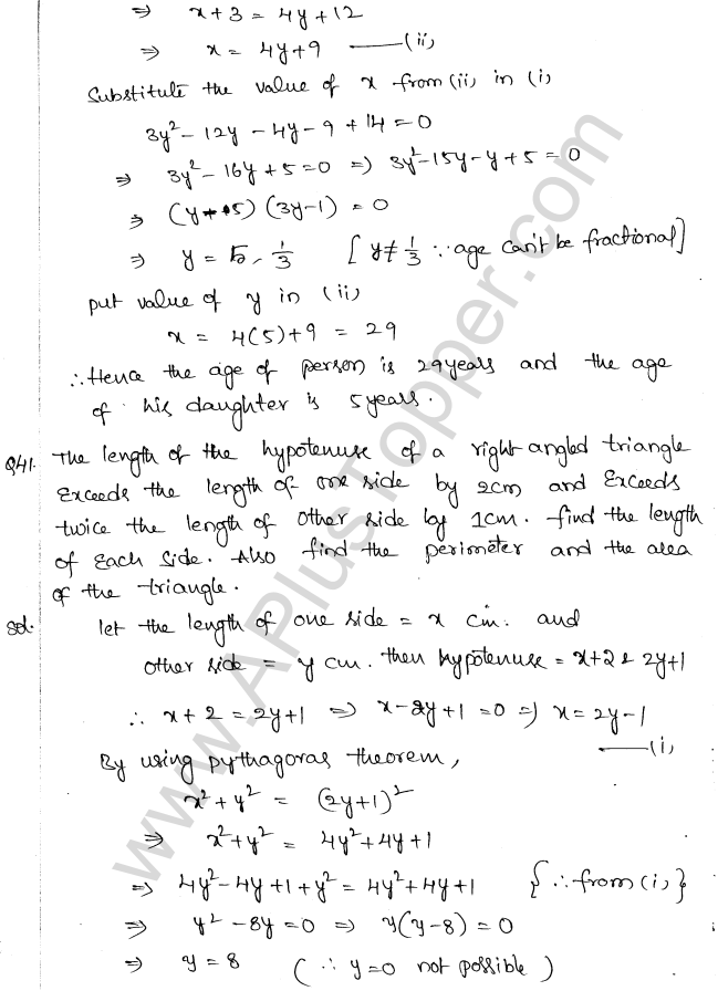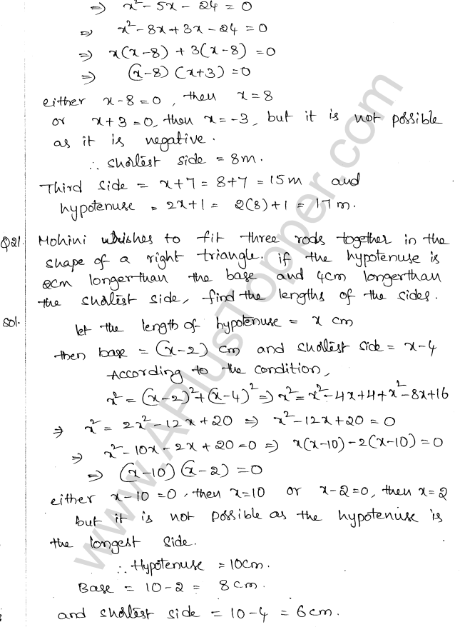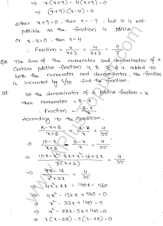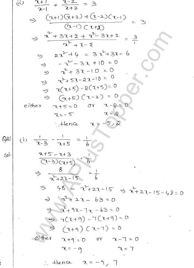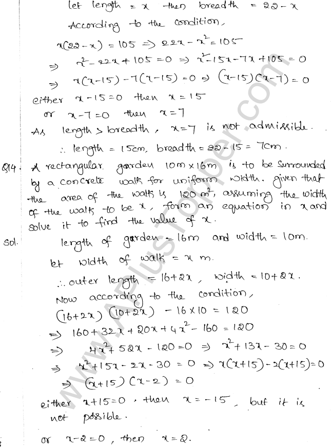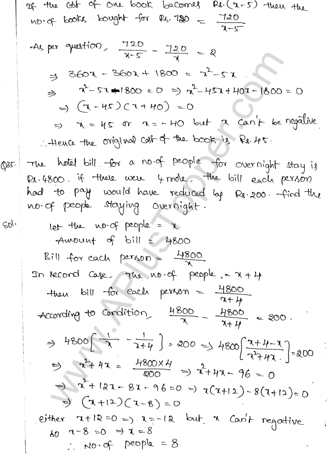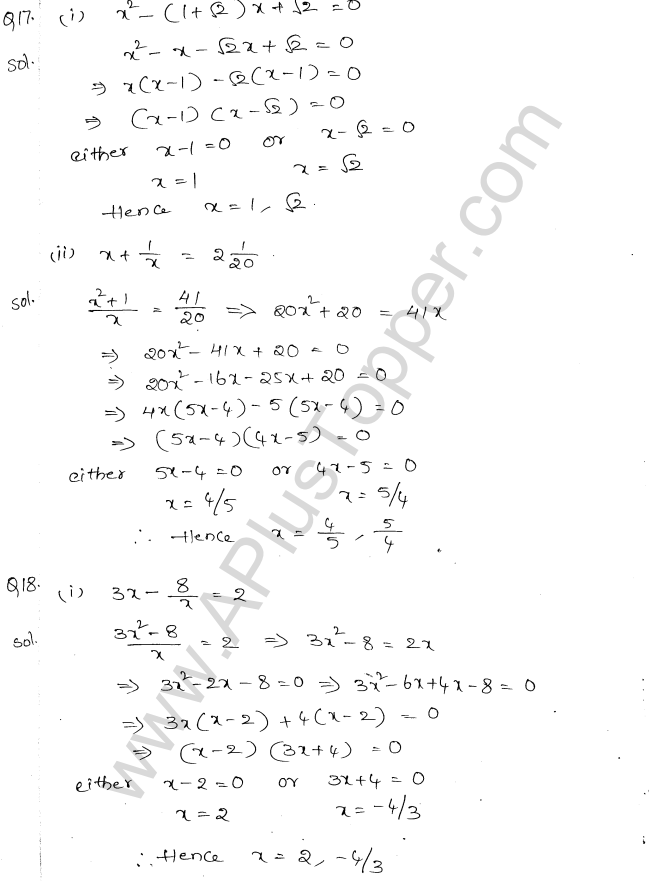 ML Aggarwal Class 10 Solutions Chapter 5 Quadratic Equations in One Variable