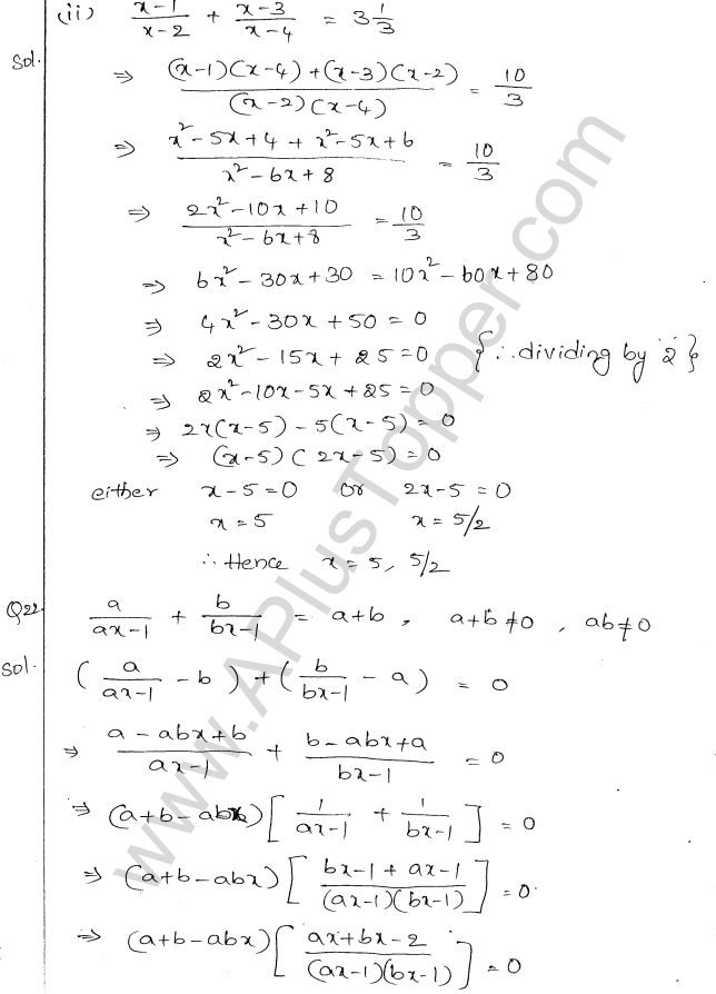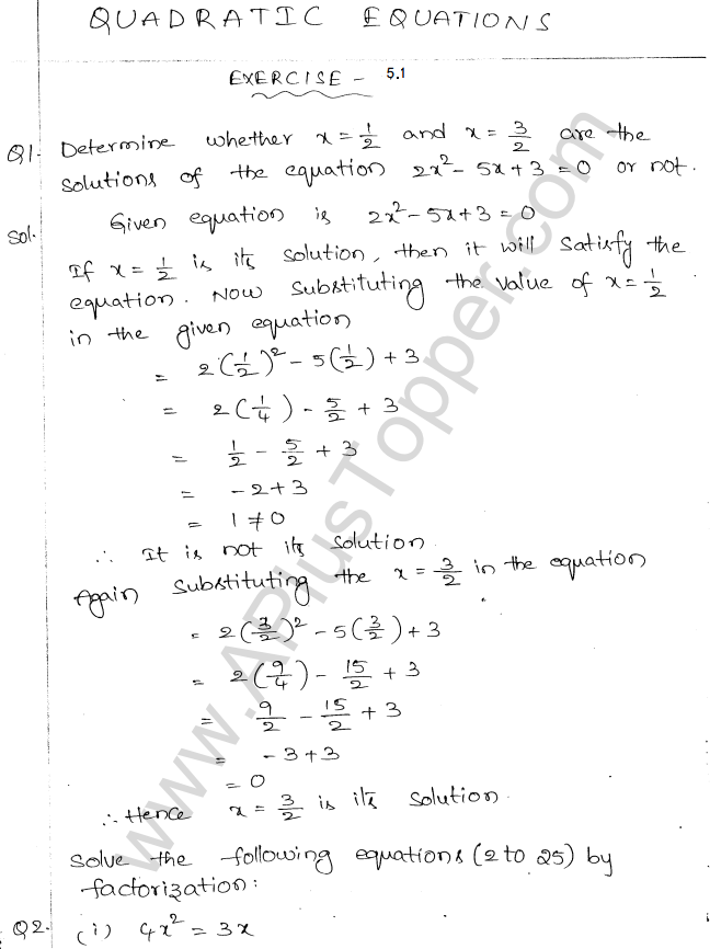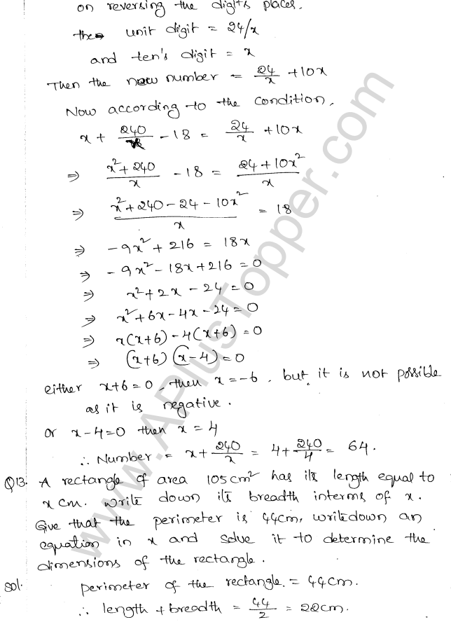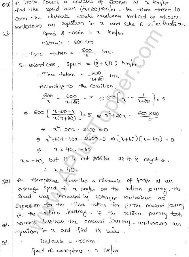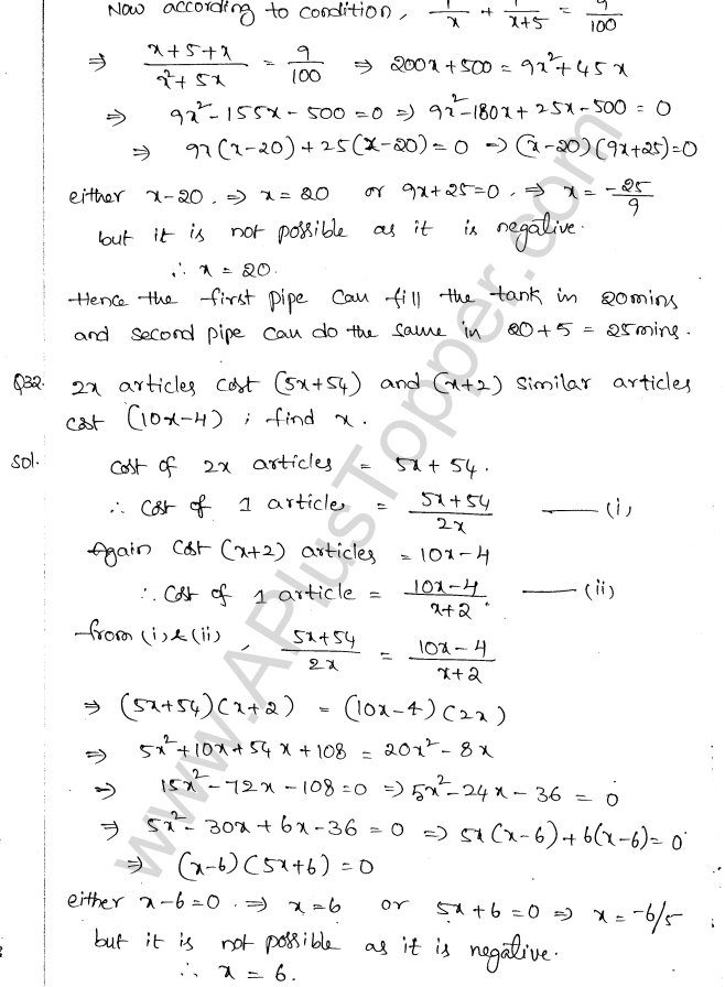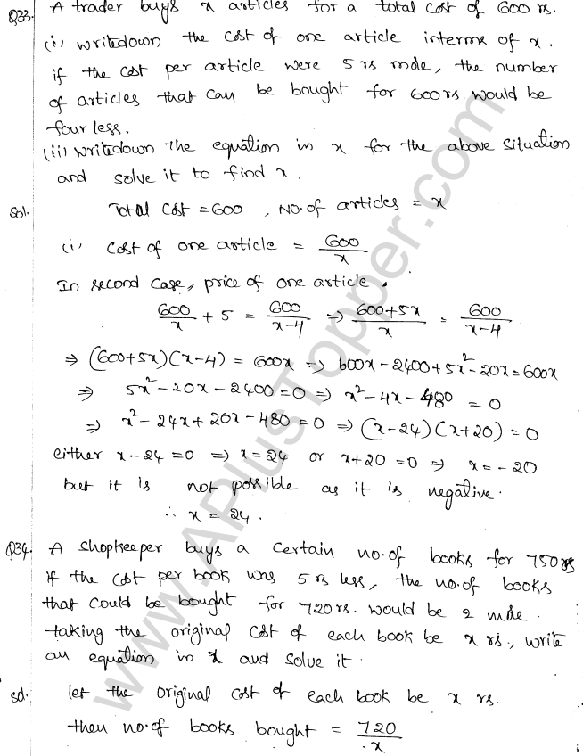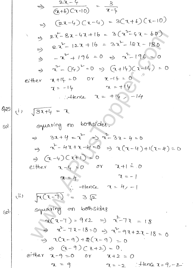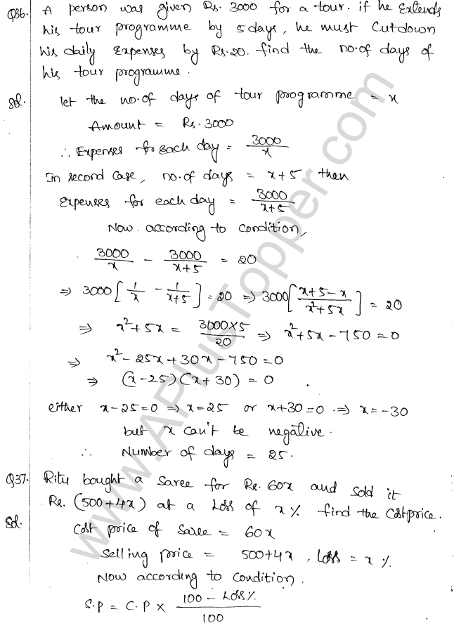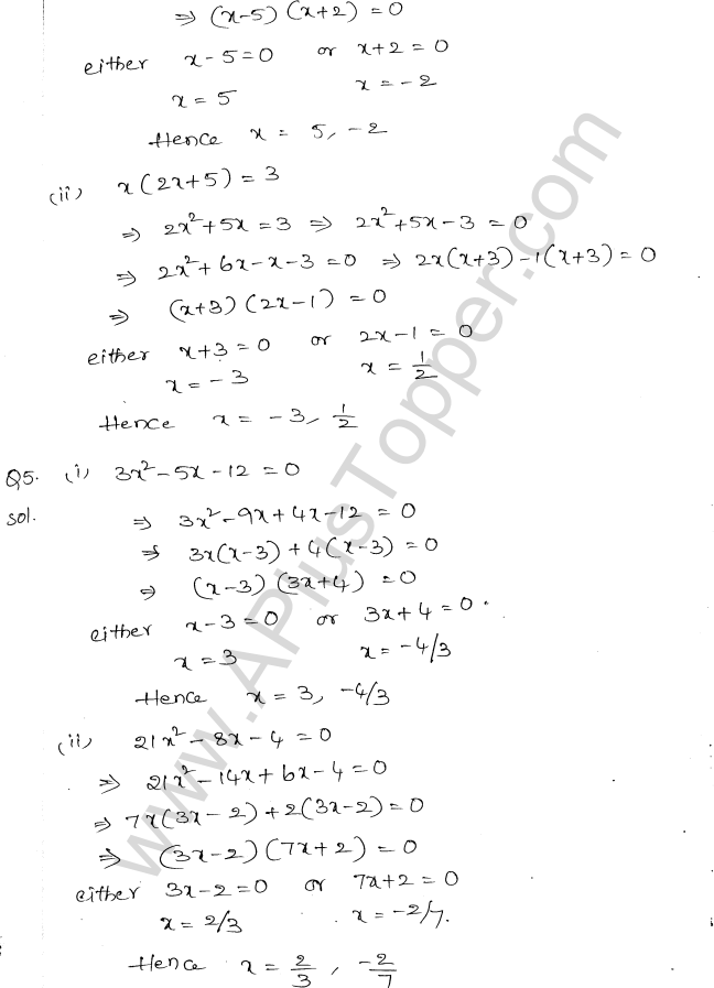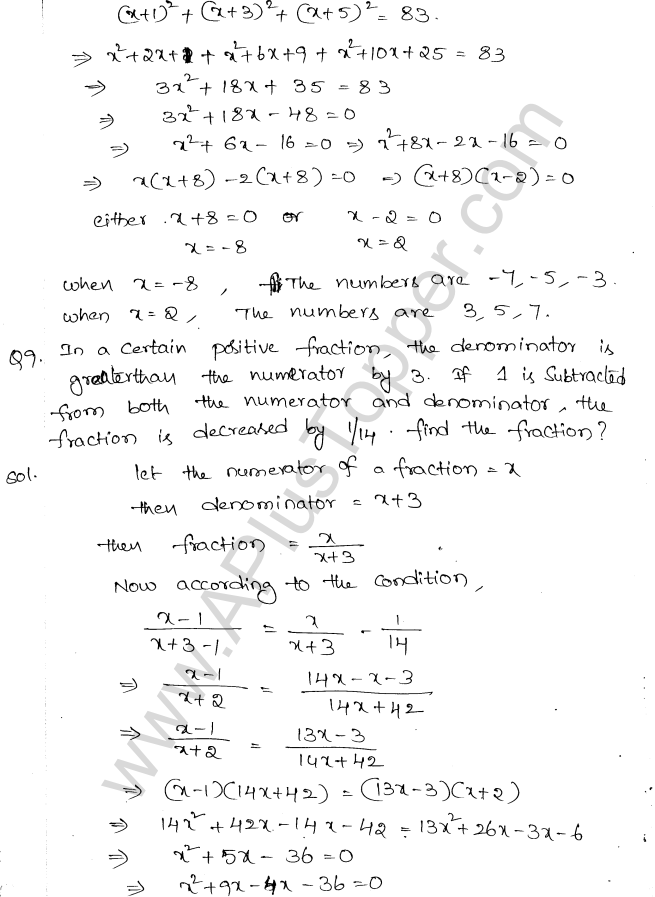 ML Aggarwal Class 10 Solutions Chapter 5 Quadratic Equations in One Variable