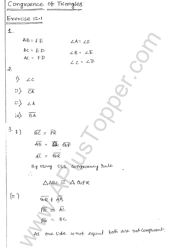 Understanding ICSE Mathematics Class 7 ML Aggarwal Solutions Pdf Download Chapter 12 Congruence of Triangles
