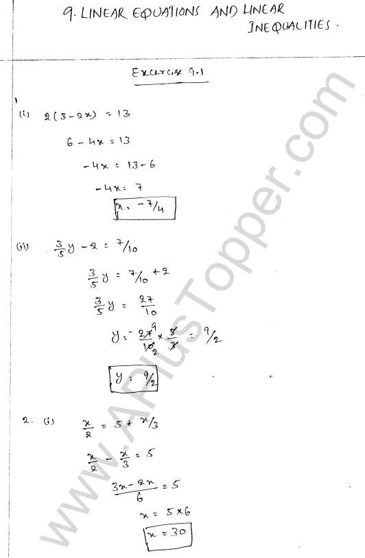 Understanding ICSE Mathematics Class 7 ML Aggarwal Solutions Pdf Download Chapter 9 Linear Equations and Inequalities