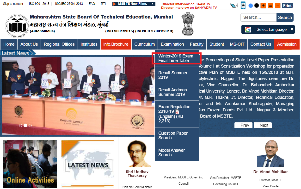 Students should go to the official website of MSBTE. Then, download the ‘Winter 2023 Exam Final Time Table’ that appeared under the ‘Examination’ menu of the homepage.