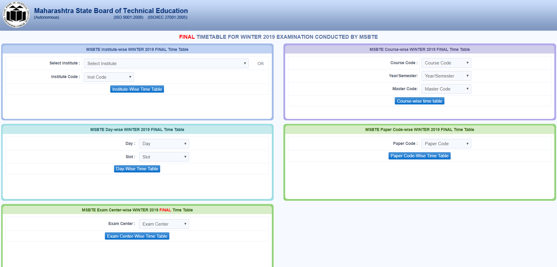 - The Final Time Table conducted by MSBTE will appear on your screen.