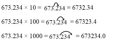 Multiplication of a decimal by 10, 100, 1000 etc.: