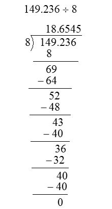 Make the divisor a whole number by shifting the decimal point in dividend to the right by three places,