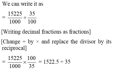 15.225 ÷ 0.35 = 1522.5 ÷ 0.35 = 1522.5 ÷ 35