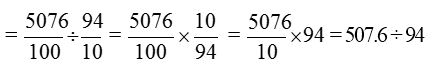 Hence, 50.76 ÷ 9.4 = 507.6 ÷ 94
