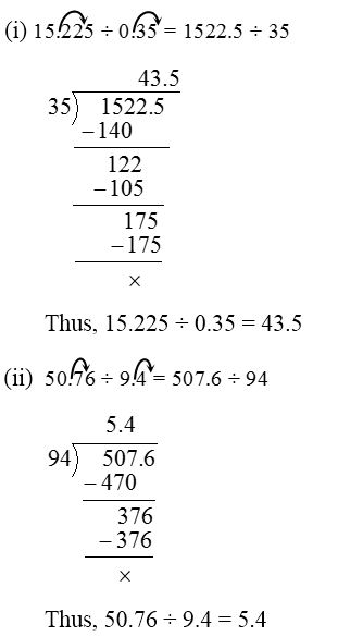 3. Divide (i) 15.225 by 0.35 (ii) 50.76 ÷ 9.4