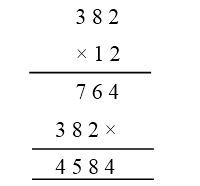 Now, 3.82 × 12 = 45.84 (mark the point after two digits from right).