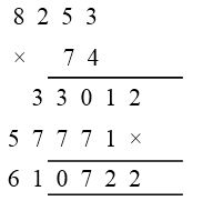 Now, 82.53 × 7.4 = 610.722 (mark the decimal point after (2 + 1 = 3) digits from right).