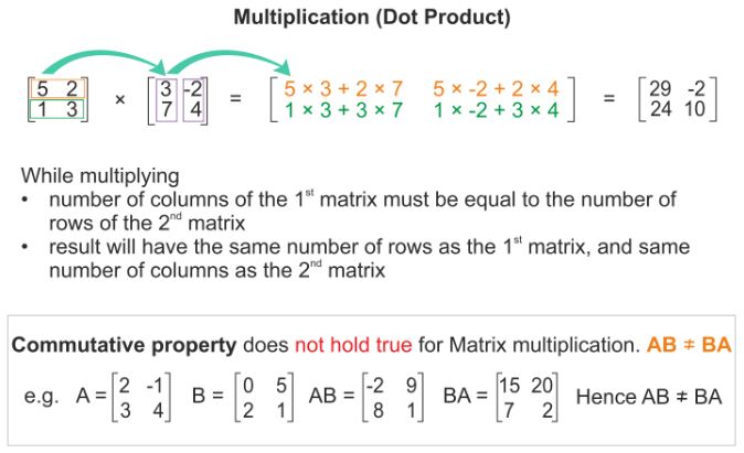 - If AB = AC ⇏ B = C, (Cancellation law is not applicable)