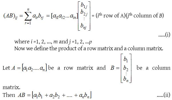 Thus, from (i), (AB)ij = Sum of the product of elements of ith row of A with the corresponding elements of jth column of B.