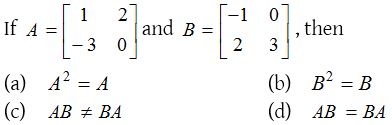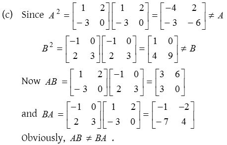 - If AB = 0, it does not mean that A = 0 or B = 0, again product of two non zero matrix may be a zero matrix.