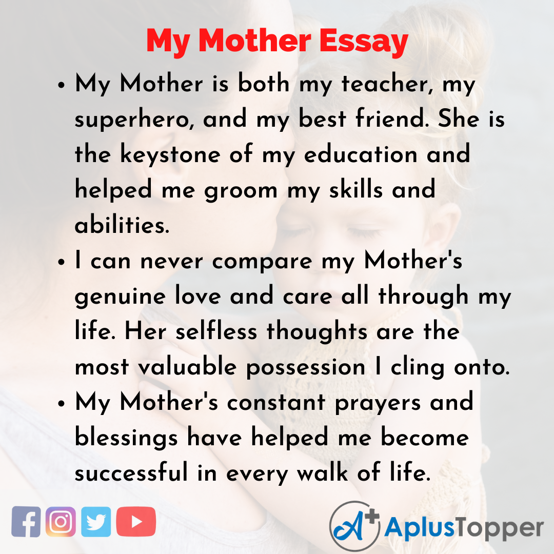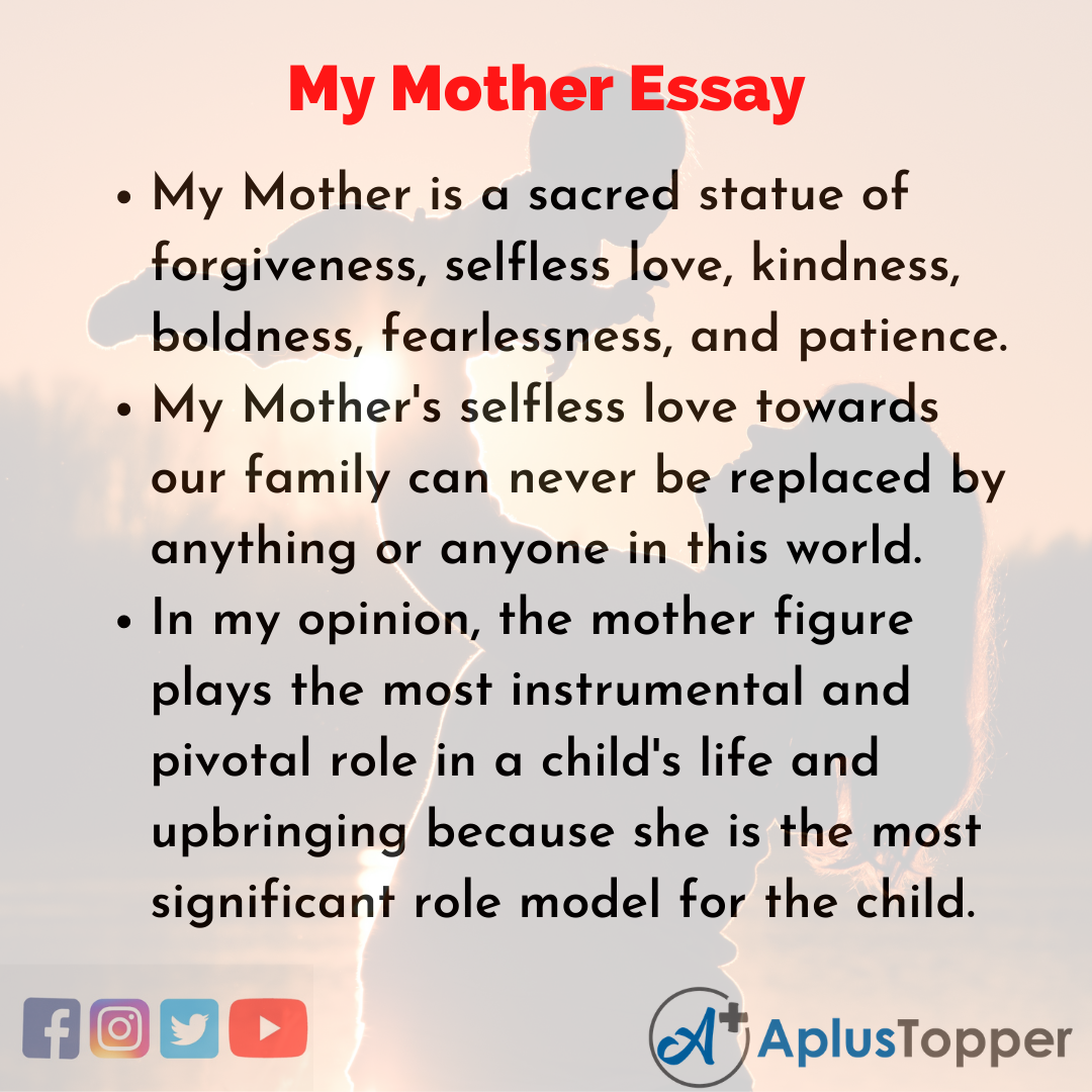 Long Essay on My Mother is usually given to classes 7, 8, 9, and 10.